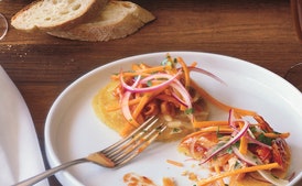 Barbecue Chicken Hoecakes with Vinegar Slaw