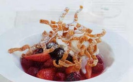 Berry Compote with Crispy Won Ton Strips and Vanilla Ice Cream