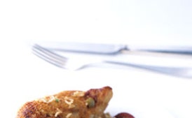 Pat chicken dry and season with salt. Heat 2 tablespoons oil in a 10- to 12-inch heavy skillet over moderately high heat until hot but not smoking, then brown chicken in batches, without crowding, turning once, 6 to 8 minutes total (add remaining 2 tablespoons oil as needed between batches). Transfer to a bowl as browned.
