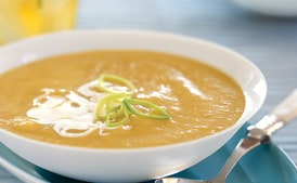 Chilled Yellow Squash and Leek Soup With Coriander and Lemon Crème Fraîche