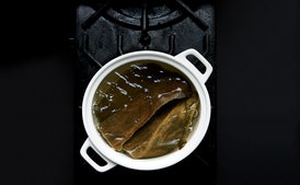 Add a splash of water to pot to cool liquid slightly. Add bonito flakes and stir once to submerge them. Return to a gentle boil, reduce heat, and simmer gently, skimming off any foam, 5 minutes. Let steep off heat, 15 minutes.
