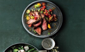 Cut steak crosswise into 1/4"-thick slices. Serve salad with steak.