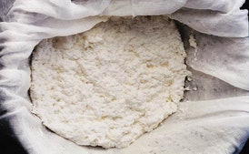 Pour the mixture into the lined sieve and let it drain 1 hour. After discarding the liquid, chill the ricotta, covered; it will keep in the refrigerator 2 days.