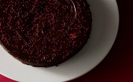 Carefully peel off parchment from cake. Pour glaze onto center of cake and spread to edges with a spatula. Decorate with sprinkles and/or nonpareils.