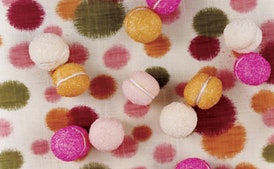 Put sanding sugars in different bowls. Roll a scant teaspoon of dough into a ball and drop into sugar, turning to coat. Reshape if necessary and transfer to a baking sheet. Repeat, spacing balls 3/4 inch apart, until baking sheet is filled.