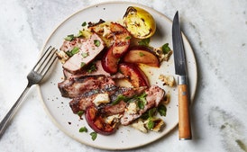 Grilled Pork Chops with Plums, Halloumi, and Lemon