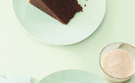 ['1 1/2 cups brown sugar', '4 tablespoons butter', '3 eggs', '3 ounces unsweetened chocolate, melted', '3/4 cup sour cream', '1 1/2 cups all-purpose flour', '1 1/2 teaspoons baking soda', '3/4 cup hot coffee', '1 1/2 teaspoons pure vanilla extract', '1/2 teaspoon salt', 'Vegetable oil cooking spray']