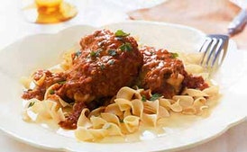 Remove from heat, then season with salt and stir in 2 tablespoons sour cream. Serve, sprinkled with parsley, over noodles or rice, with additional sour cream on the side.
