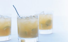 ['1/4 fresh lime, cut into 4 pieces', '2 teaspoons superfine granulated sugar', '3 oz (6 tablespoons) pure passion-fruit juice (preferably Looza brand)', '1 1/2 oz (3 tablespoons) cachaça']