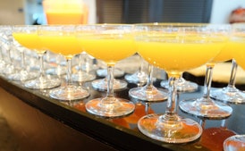 ['1 cup chilled champagne', '1/2 cup chilled passionfruit nectar or juice']