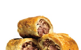 Preheat oven to 425°F. Bake pastries (if frozen, no need to thaw) until puffed and light brown, about 15 minutes. Reduce heat to 350°F; continue baking until sausage is cooked through and pastry is golden and completely puffed, about 25 minutes. Let cool slightly. Cut sausage rolls crosswise into 1" pieces. Serve with a bowl of Dijon mustard for dipping.