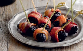 Place the prunes on a the prepared baking tray and bake them for 10–15 minutes, turning over half way through cooking, until the bacon is slightly crispy on both sides.