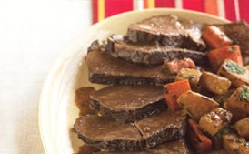 Transfer roasts to cutting board; tent with foil. Strain braising liquid into medium saucepan, pressing on solids in strainer. Spoon fat from surface of braising liquid; keep liquid warm.