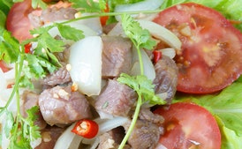 Arrange beef on top of lettuce and serve with lime dipping sauce.