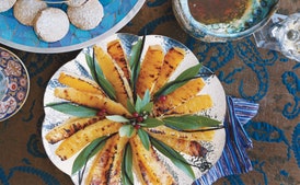 Peel pineapple, then quarter lengthwise. Cut out core, then cut each quarter lengthwise into 4 pieces (for a total of 16).